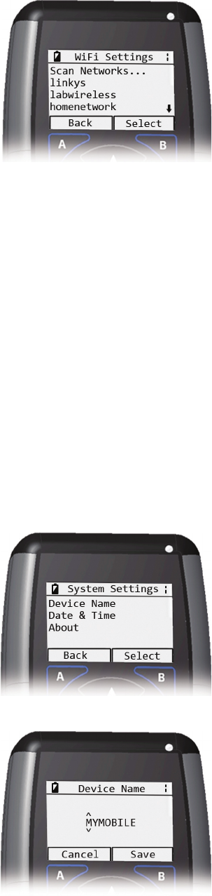 10. From the Main Menu Screen select “SystemSengs”. This screen contains “Device Name”,