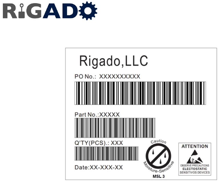 desiccant pack and humidity card and placed in a 340x350x65mm box. On the outside of the bag an