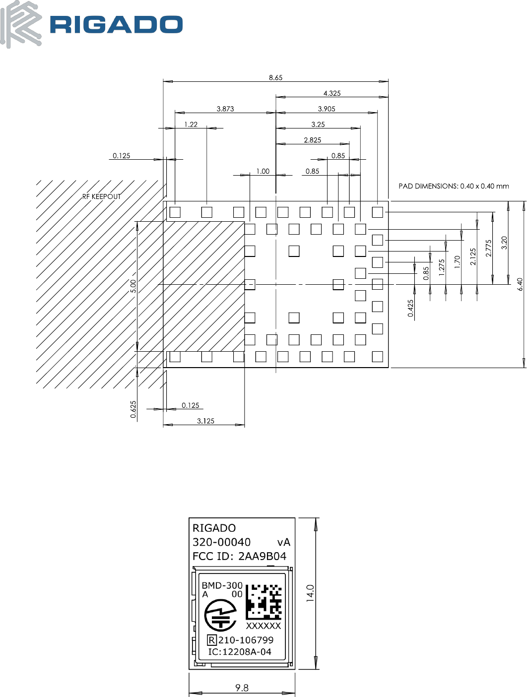 BMD-300/301 Dimensions: 14 x 9.8 x 1.9mm