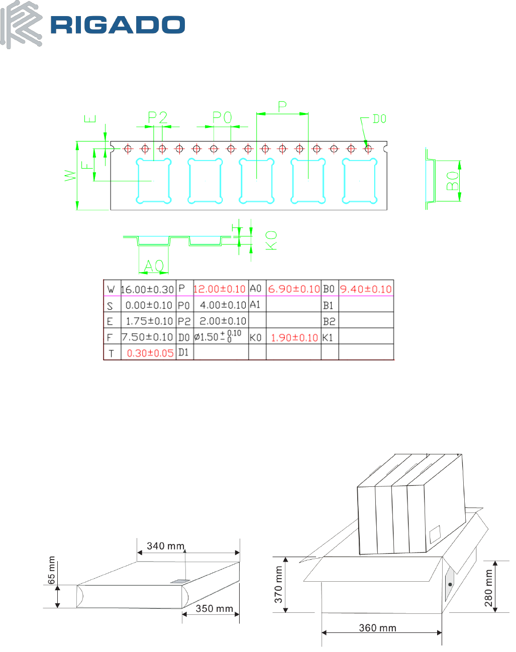 desiccant pack and humidity card and placed in a 340x350x65mm box. On the outside of the bag an