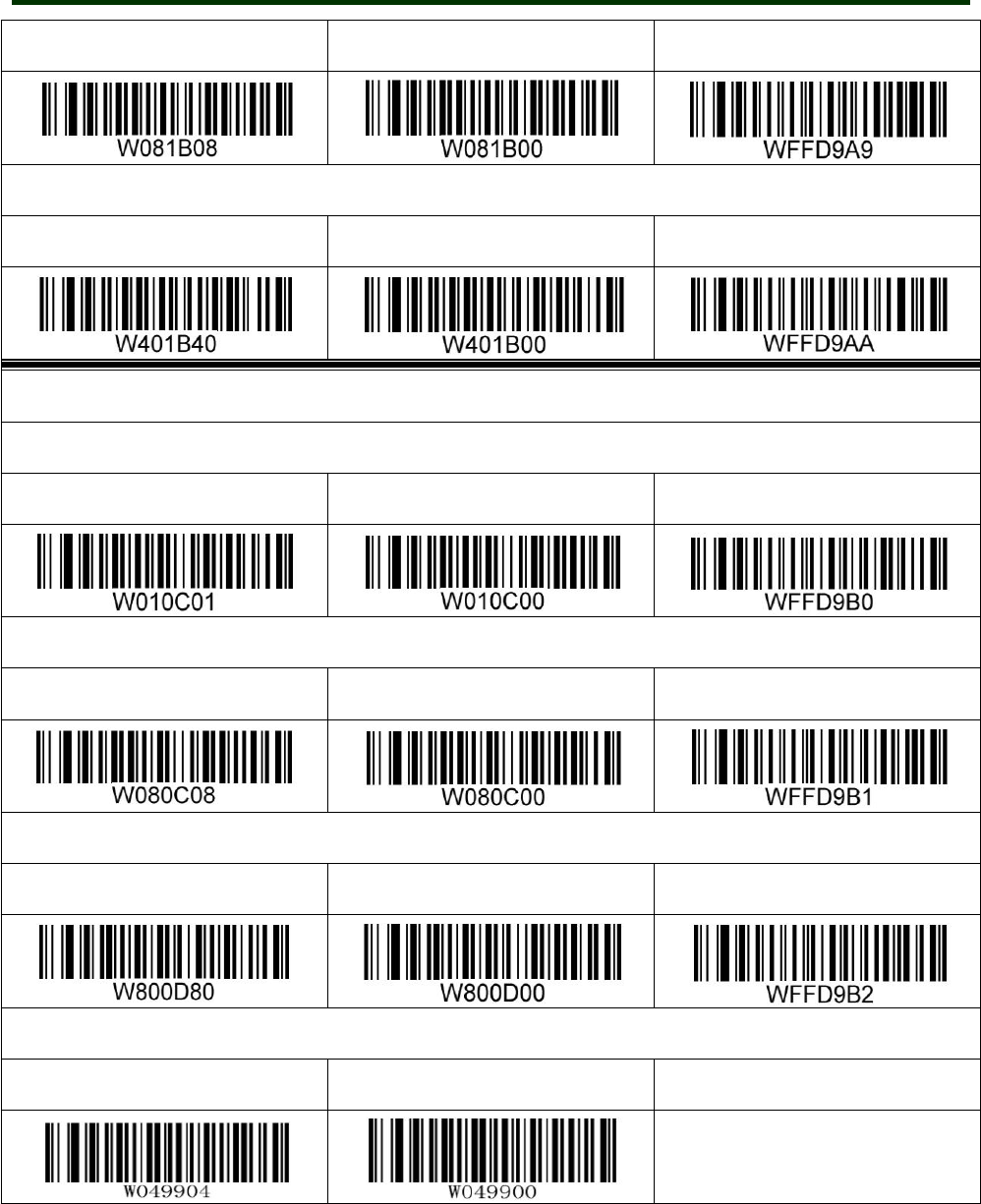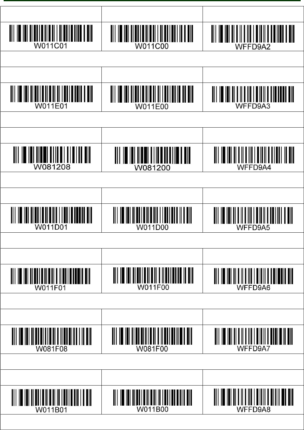 1. Turn on the barcode reader, and read below barcodes sequence, the blue LED will