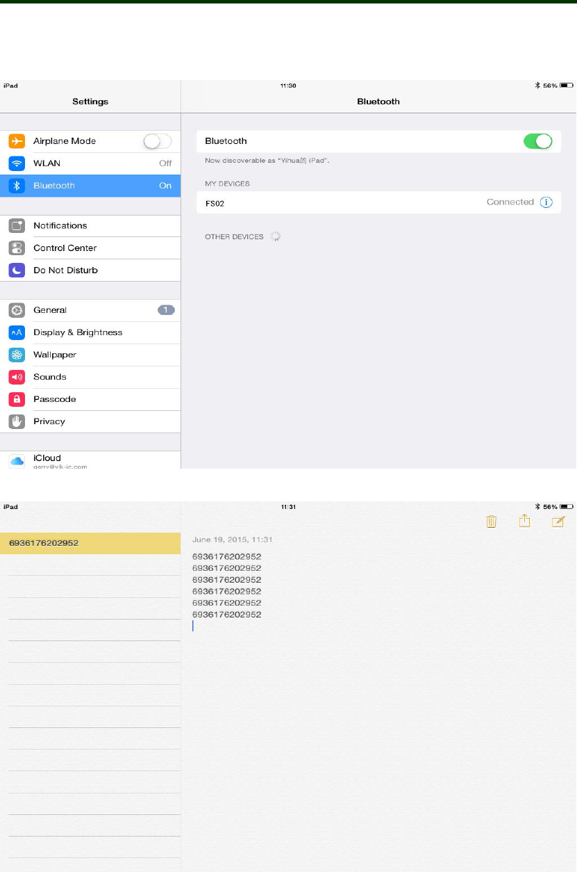 2. Enable the bluetooth of IOS to pair with the barcode reader. After the pairing is