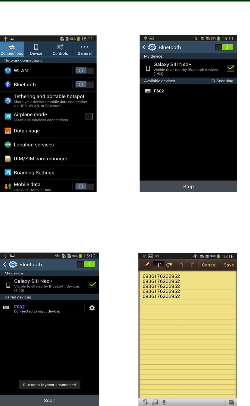 Enable the bluetooth of Android device to pair with the barcode reader. After