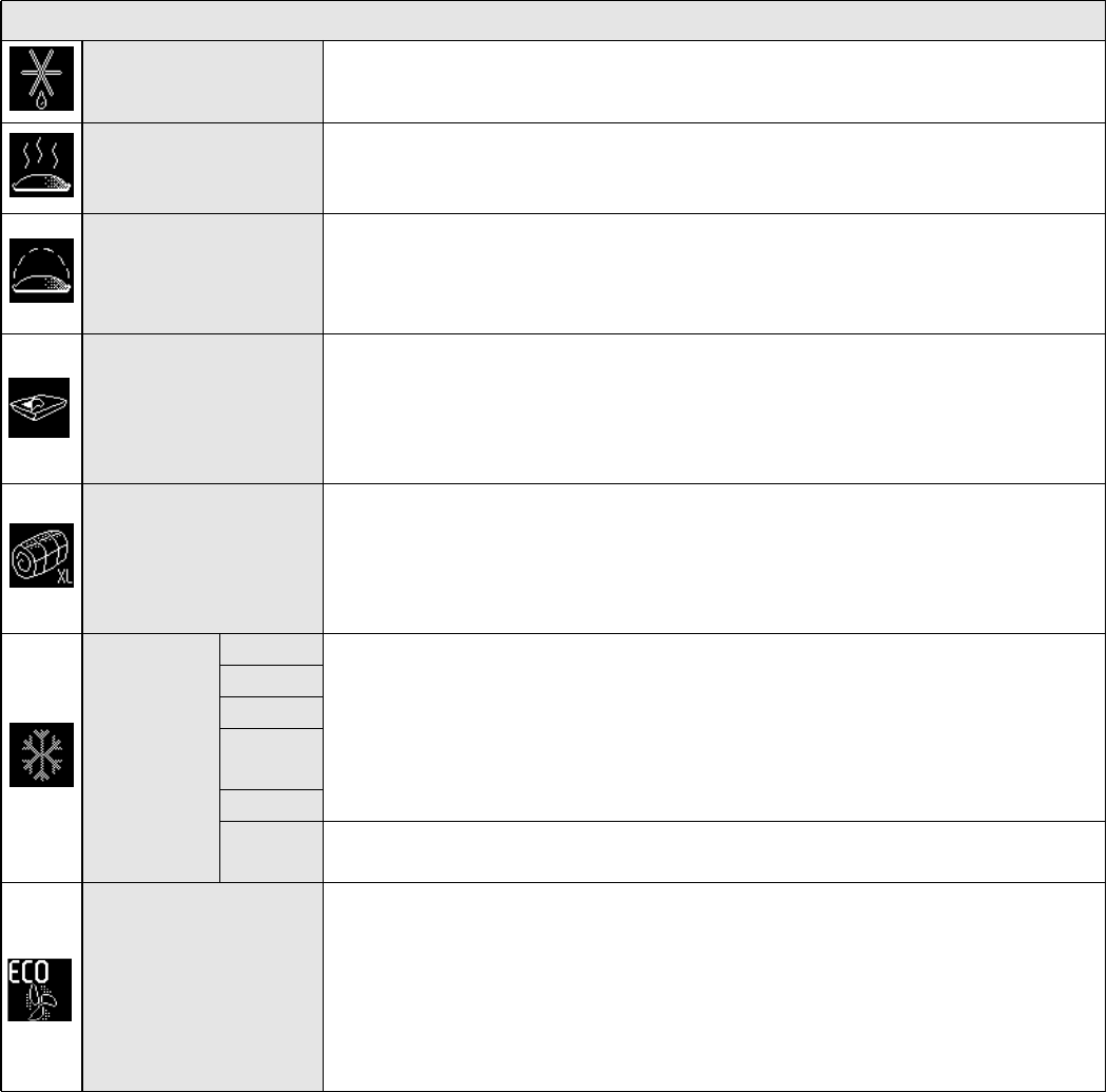 The cooking table advises the ideal function and temperature to ensure the best results with all recipes. If