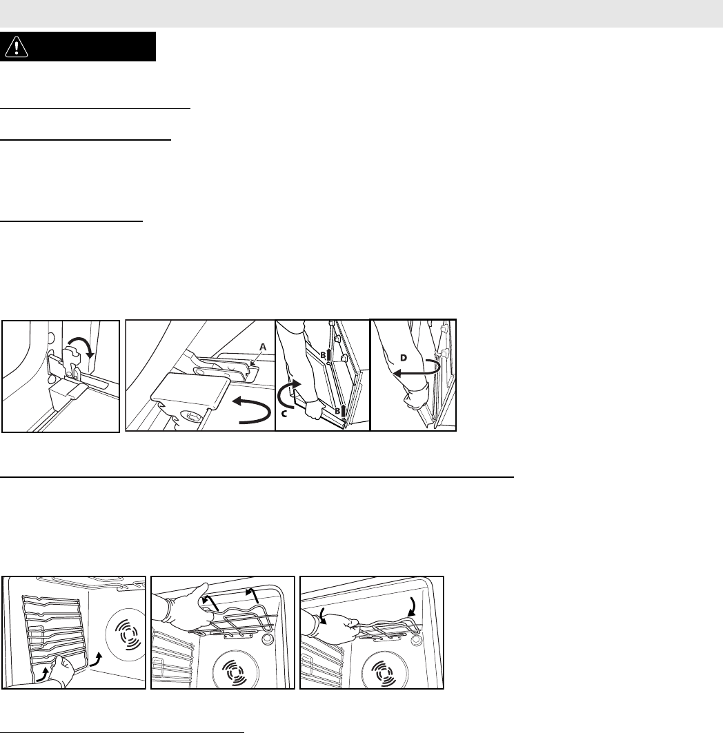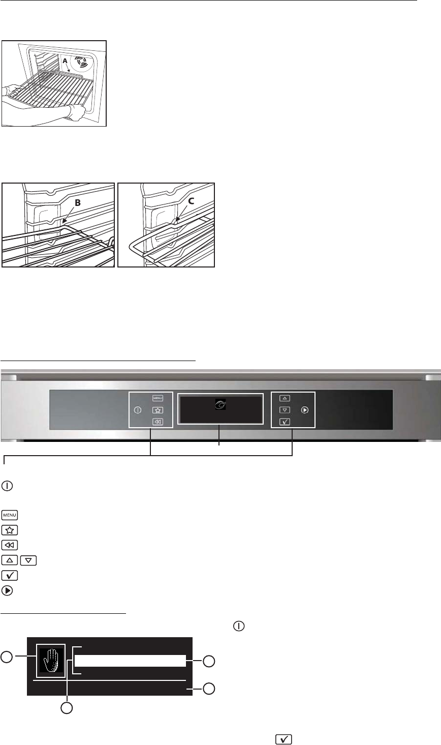 wall of the oven and resting it on the respective support. To prevent smoke and to collect cooking juices,