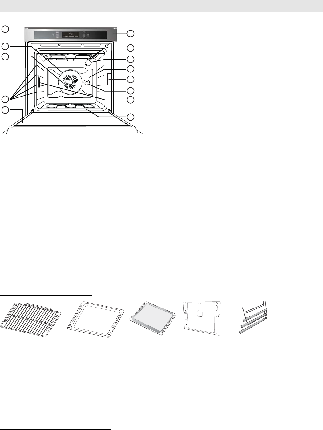 the cooking table for the choice of accessories (supplied) to be placed on the various shelves.