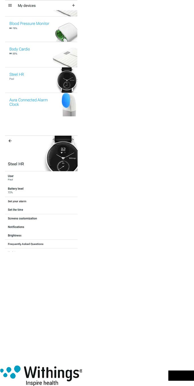 start guide. Withings does not warrant that the operation of the Withings Steel HR™ will be