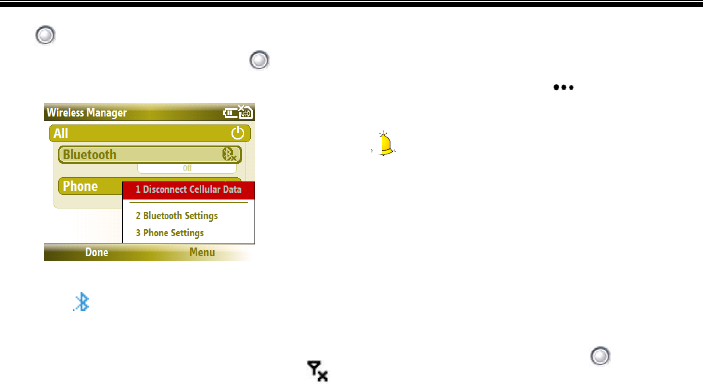 [ ]: shows the phone menus.