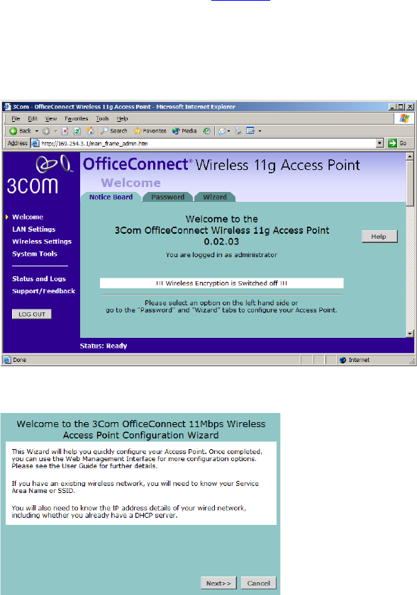 CAUTION: The 3Com OfficeConnect Wireless 11g Access Point has been