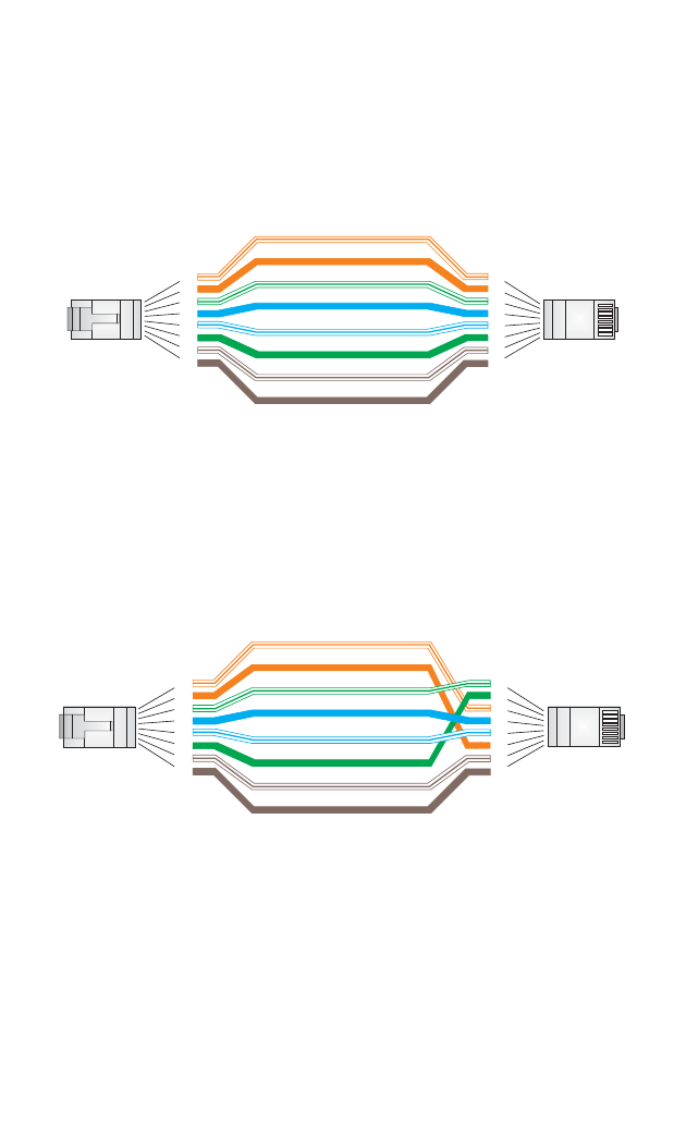 crossover (MDI-X), the two pairs of wires must be straight-through.