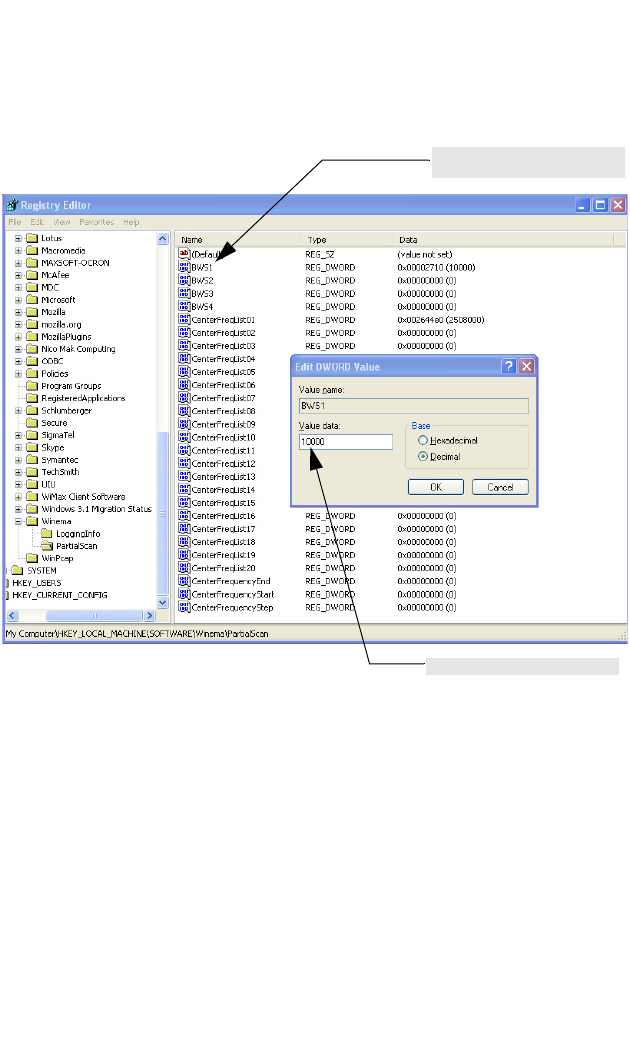 3. Add the Bandwidths you want to scan to the following registry entries: