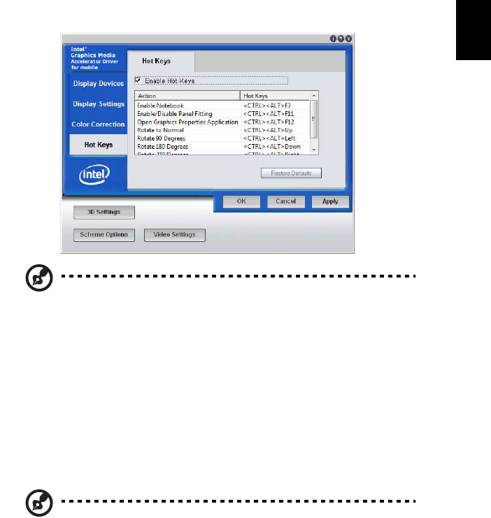 the notebook is held. To set the G-sensor rotation, click on the Intel Graphics