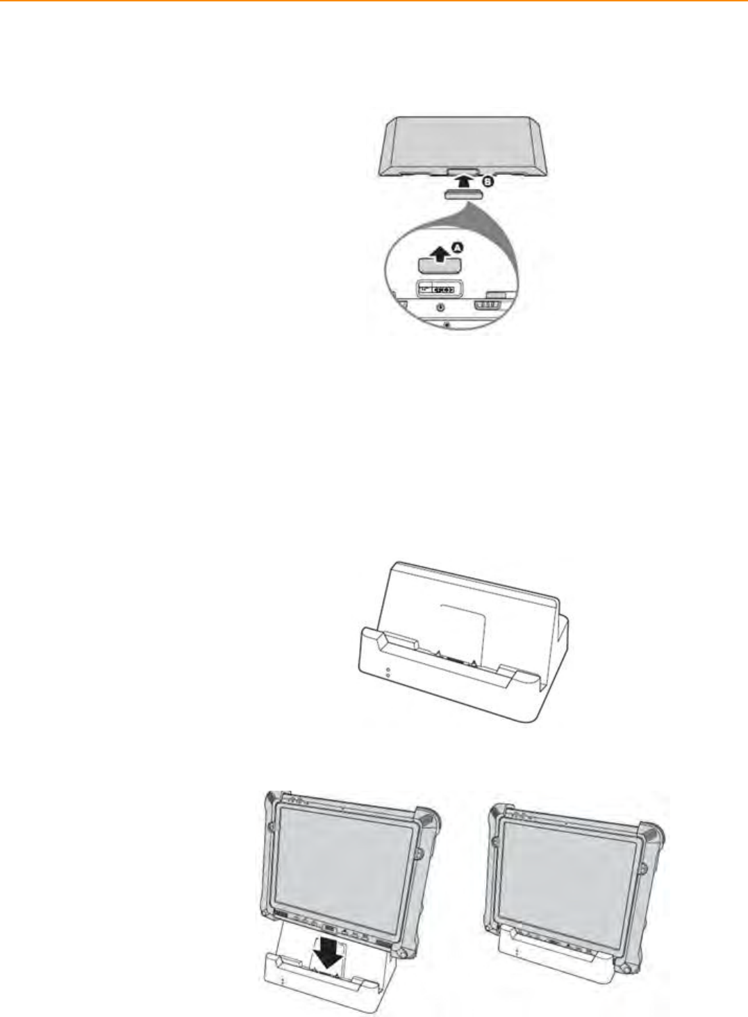 1. Remove the external battery contacts cover from the tablet PC (A).