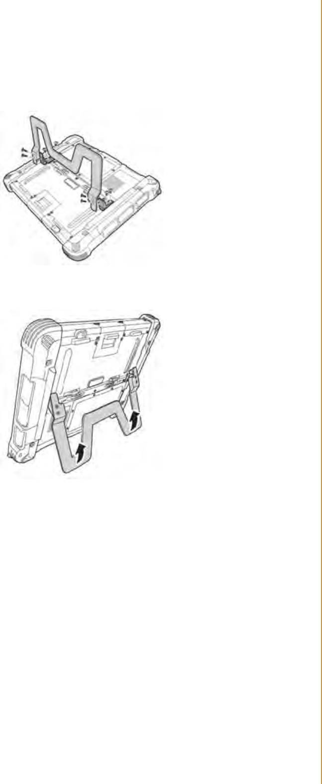 1. Fasten four screws to attach the two stand brackets to your Tablet PC.
