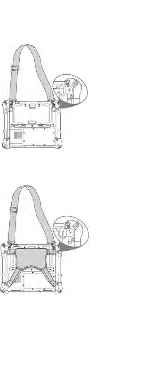 Attach the shoulder strap to the rear of your tablet PC using two screws as