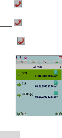 Menu>>Call history>All calls.