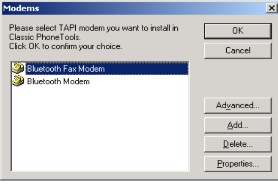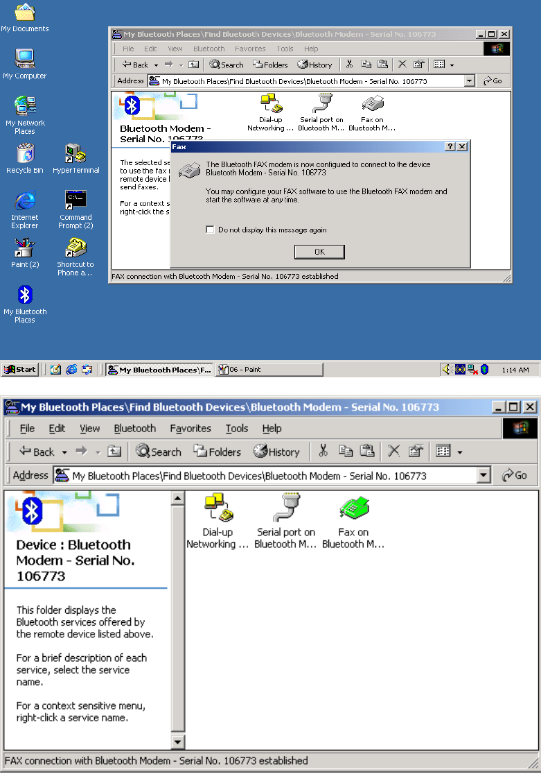 setup.exe file in the CD. Select Bluetooth Fax Modem. Click OK to