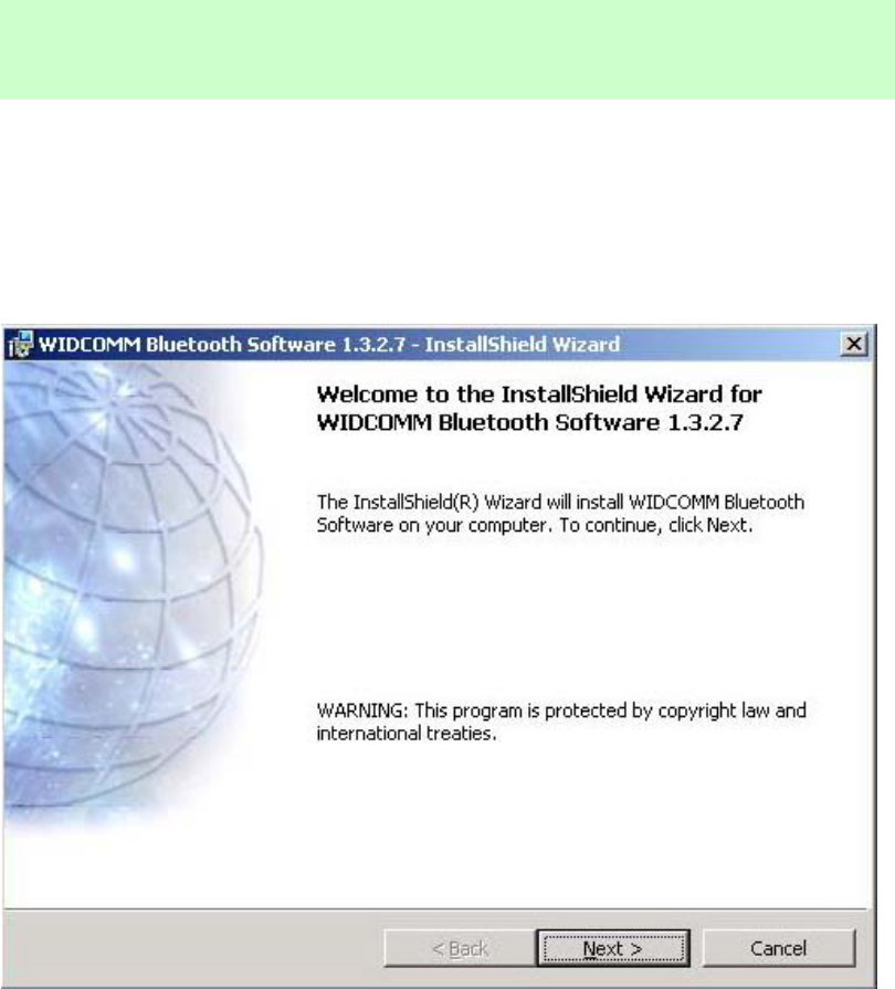 section. Any previous versions of the Bluetooth software must be uninstalled