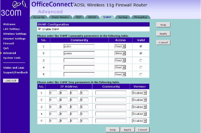 Figure 75   SNMP Screen
