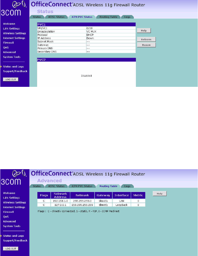 Routing Table Screen 59