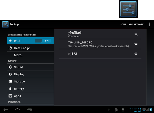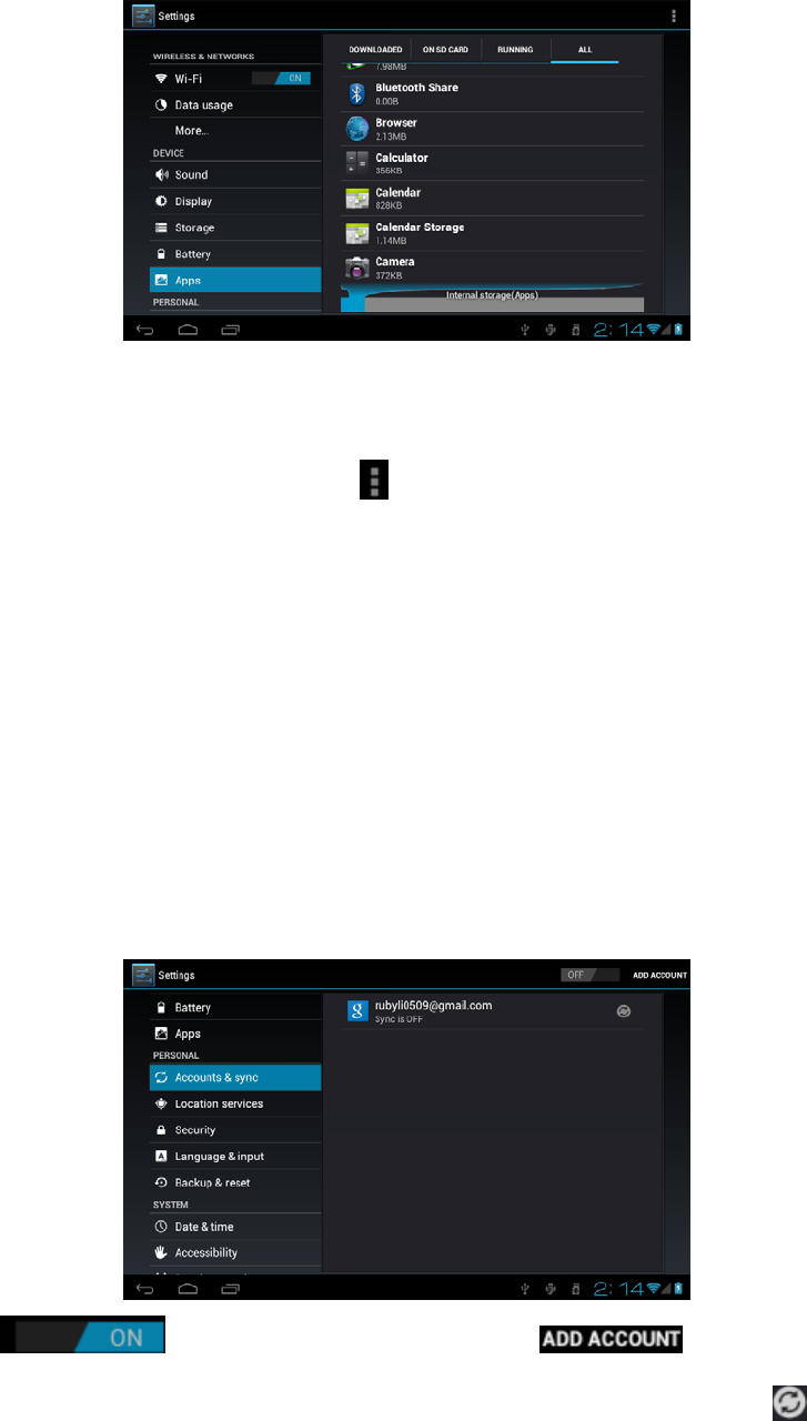 Check to turn on/off data synchronization, press the menu icon and then tap