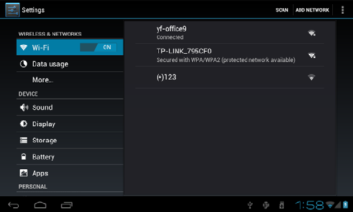 To restore the factory default settings, you can tap Settings > Backup& reset> Factory