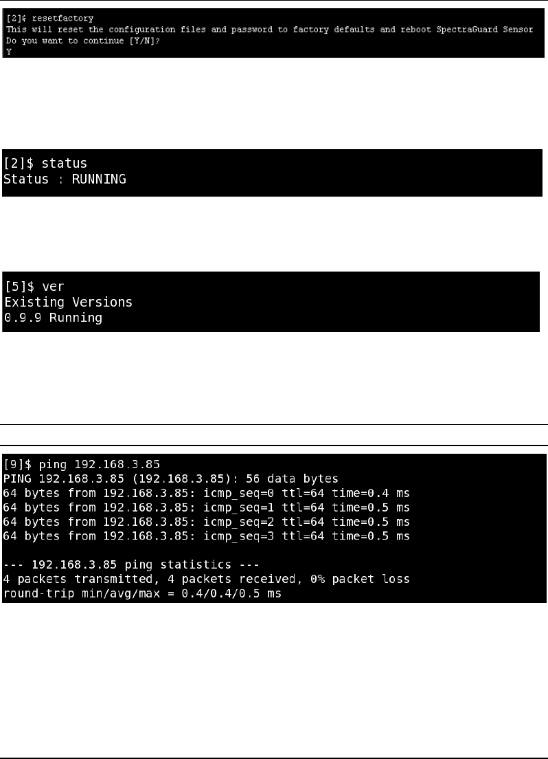 resetfactory—This command resets the Sensor configuration to the original factory settings.