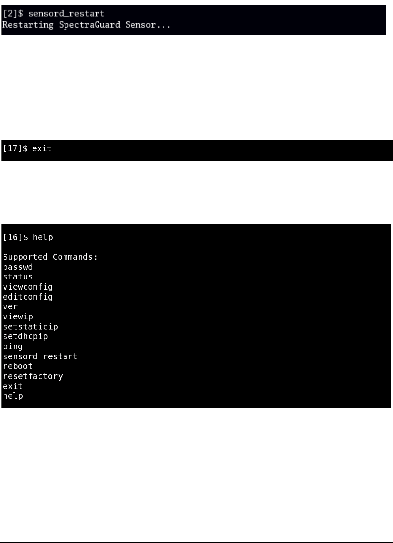 sensord_restart—This command restarts the Sensor i.e. causes the SpectraGuard Sensor software to