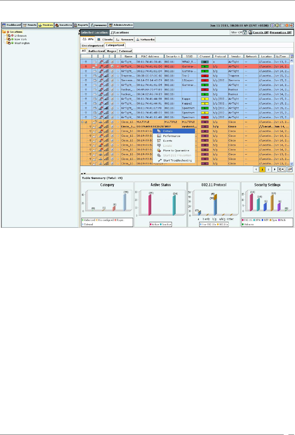 Classification: Specifies the classification of the AP–Authorized, Rogue, External, or Indeterminate. This