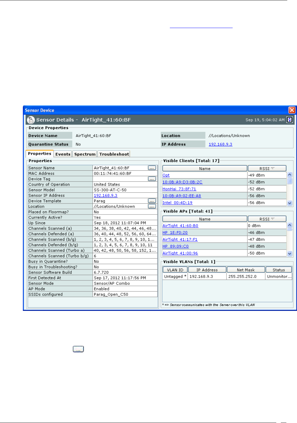 Note: From SGE 6.2 release onwards, it is possible to start/ stop quarantine and troubleshooting on individual BSSID of the