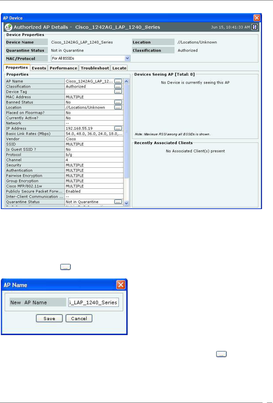 new AP name automatically displays in the Device Name field in the header of the AP Details dialog.