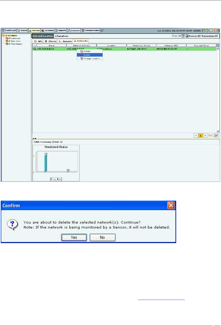 3. Click Yes in the Confirm dialog to remove the selected location.