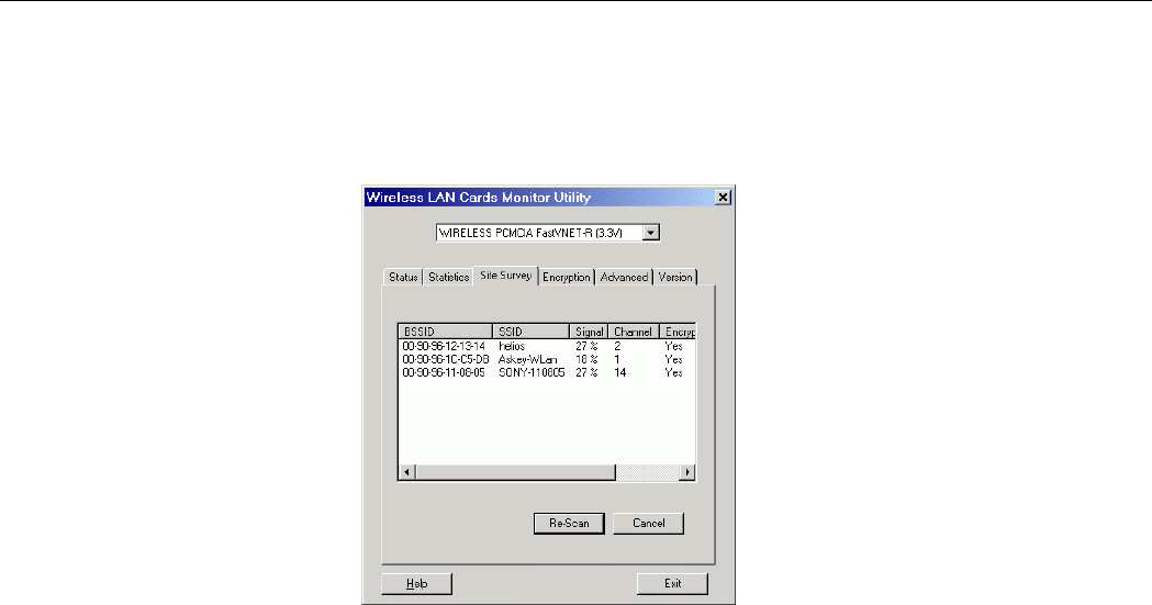 Figure 3-5 Wireless LAN Cards Monitor Utility – Site Survey...............................................................................30