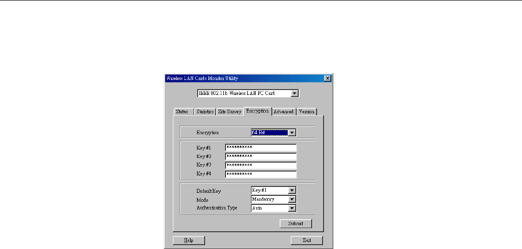 Figure 3-6 Wireless LAN Cards Monitor Utility – Encryption ................................................................................32