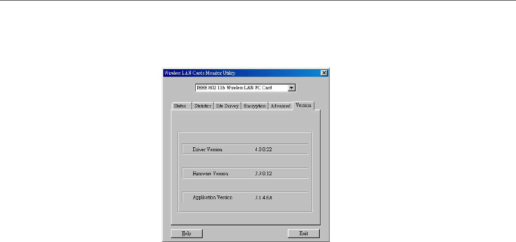 Figure 3-8 Wireless LAN Cards Monitor Utility – Version .....................................................................................35