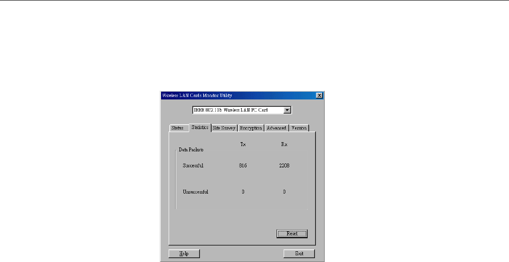 Figure 3-4 Wireless LAN Cards Monitor Utility – Statistics............................................................................ 28