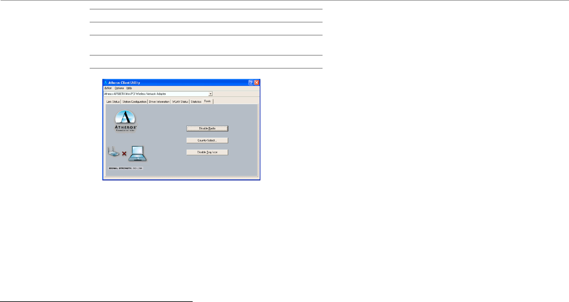 Atheros Client Utility Help Launch the Atheros Client Utility Help.