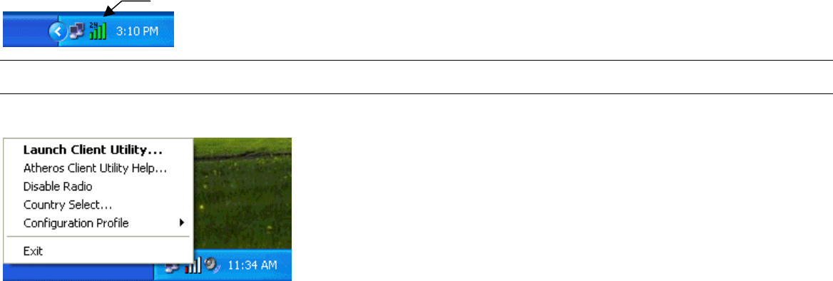 2. Right-click on the Atheros Client Utility (ACU) icon in the system tray. Click Exit to shut down the utility.