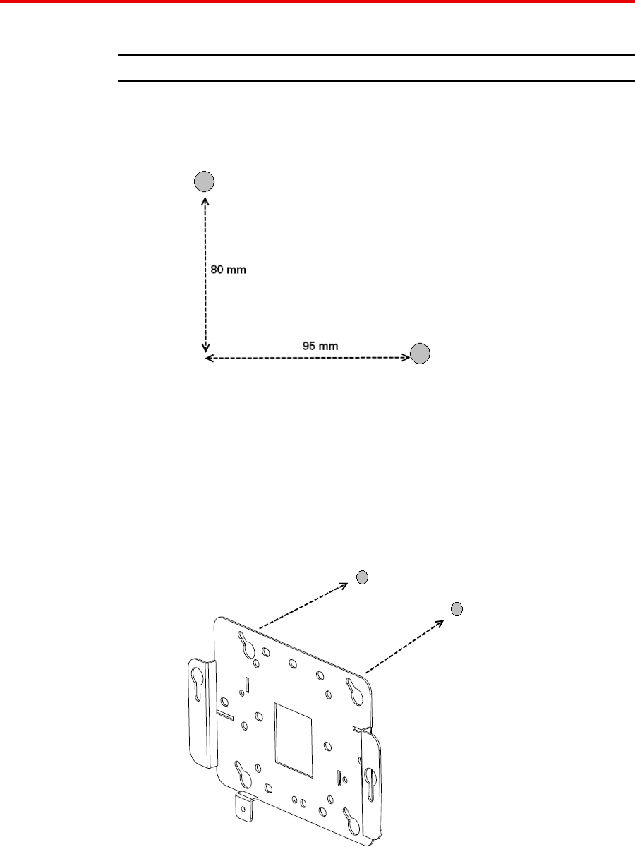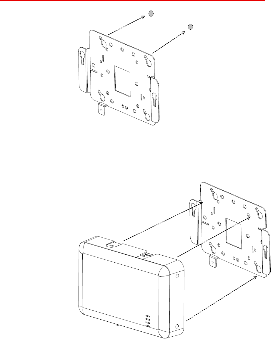 3Deslize o suporte de parede sobre as cabeças dos parafusos e