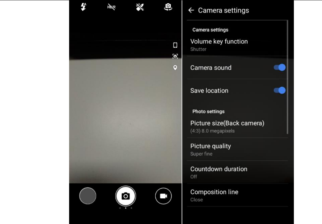Restart, Airplane mode, Screenshot and switching scene modes.