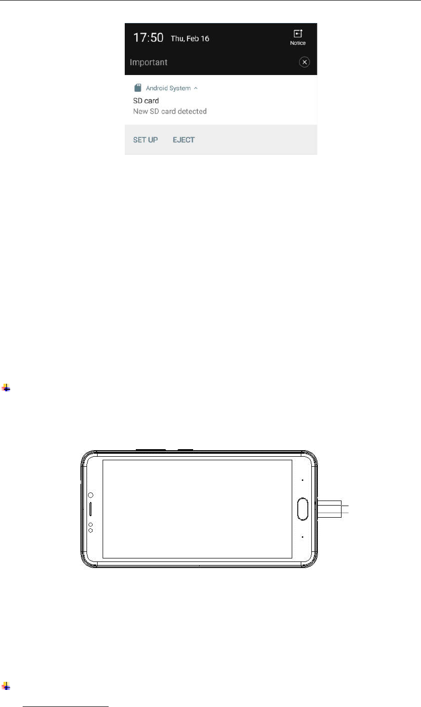 Option 1: Notification Center --> Tap the notice to set up --> Use as internal storage