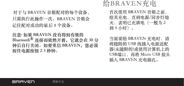• To charge your BRAVEN, plug the
