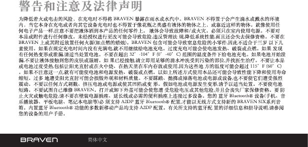 with your new BRAVEN speaker. The A2DP prole is supported by most recent mobile products with built-in Bluetooth capability. Please refer to your device’s user