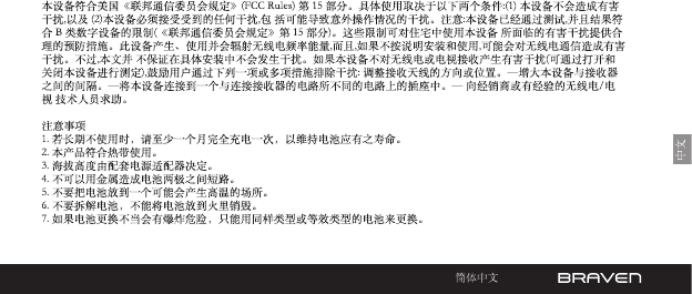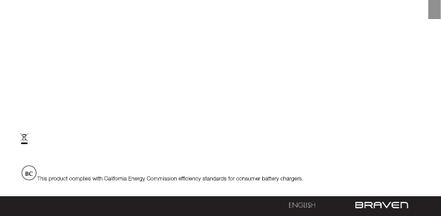 To reduce the risk of re or electric shock, do not expose the BRAVEN to rain or moisture while charging. The BRAVEN should not be exposed to dripping or