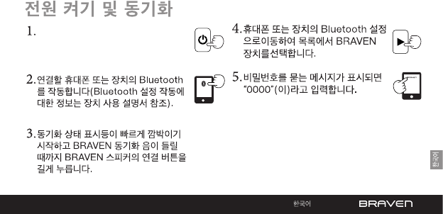 •처음으로 BRAVEN 스피커를 사용하기 전에 전원/동기화