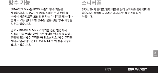 •BRAVEN를 충전하시기 위해서는, 포함된 USB 케이블을