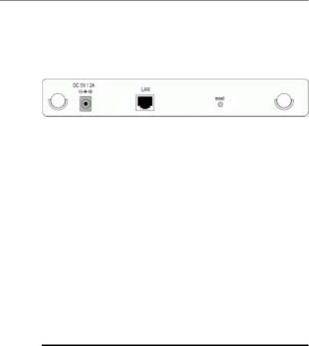 • Back Panel: Reset button, Power Jack, RJ-45 LAN Port