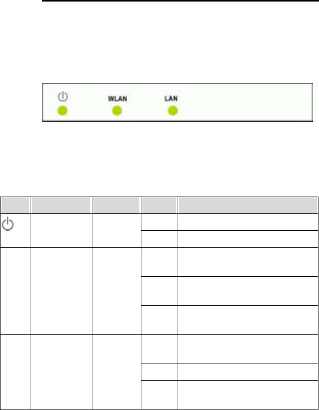 • Front Panel: 3 LEDs ( Power x 1, WLAN x 1, LAN x 1)