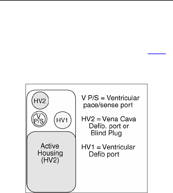• DF-1 defibrillation lead connectors.
