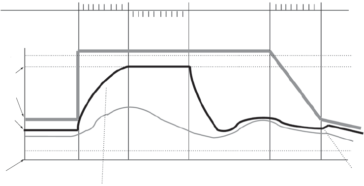 The gure shows the effect of higher and lower settings during a theoretical two-stage exercise test.